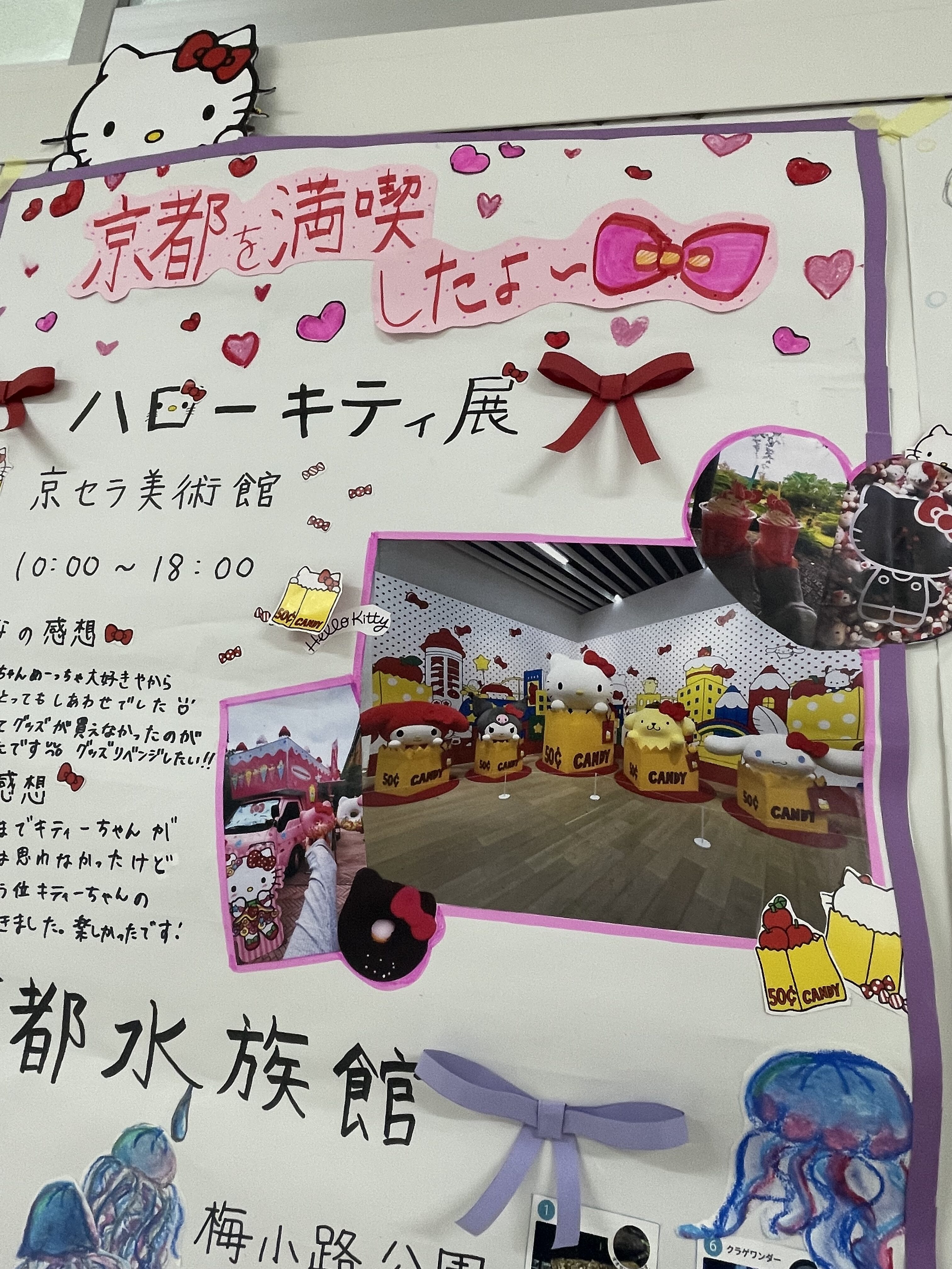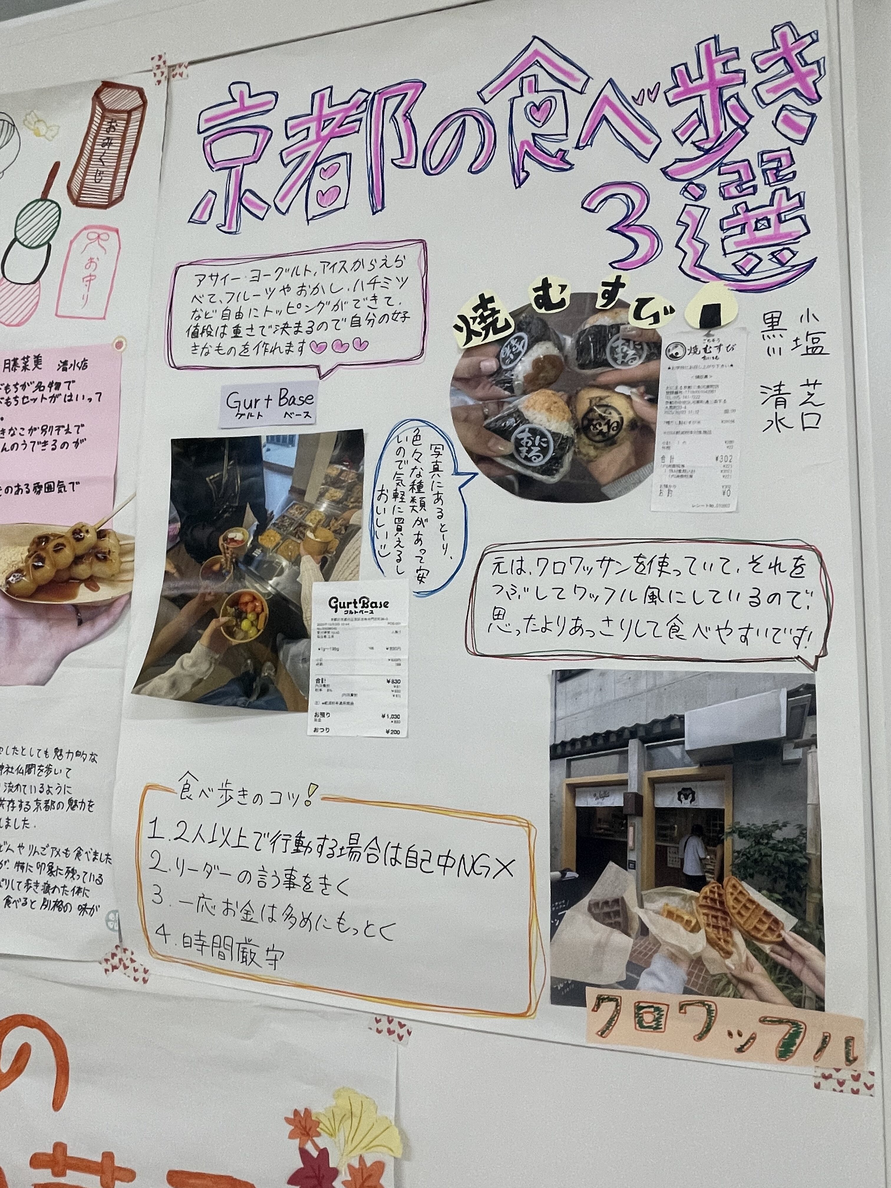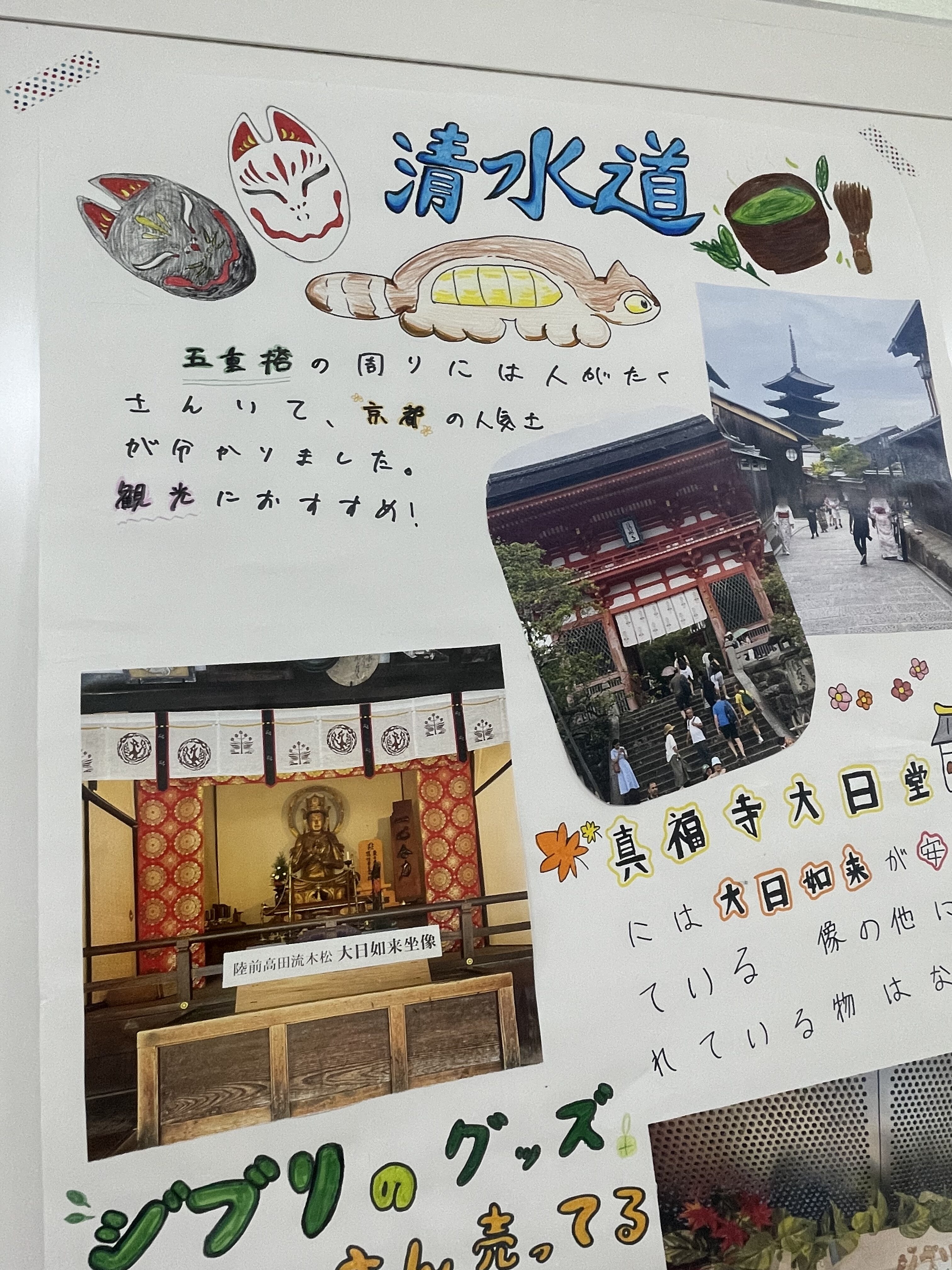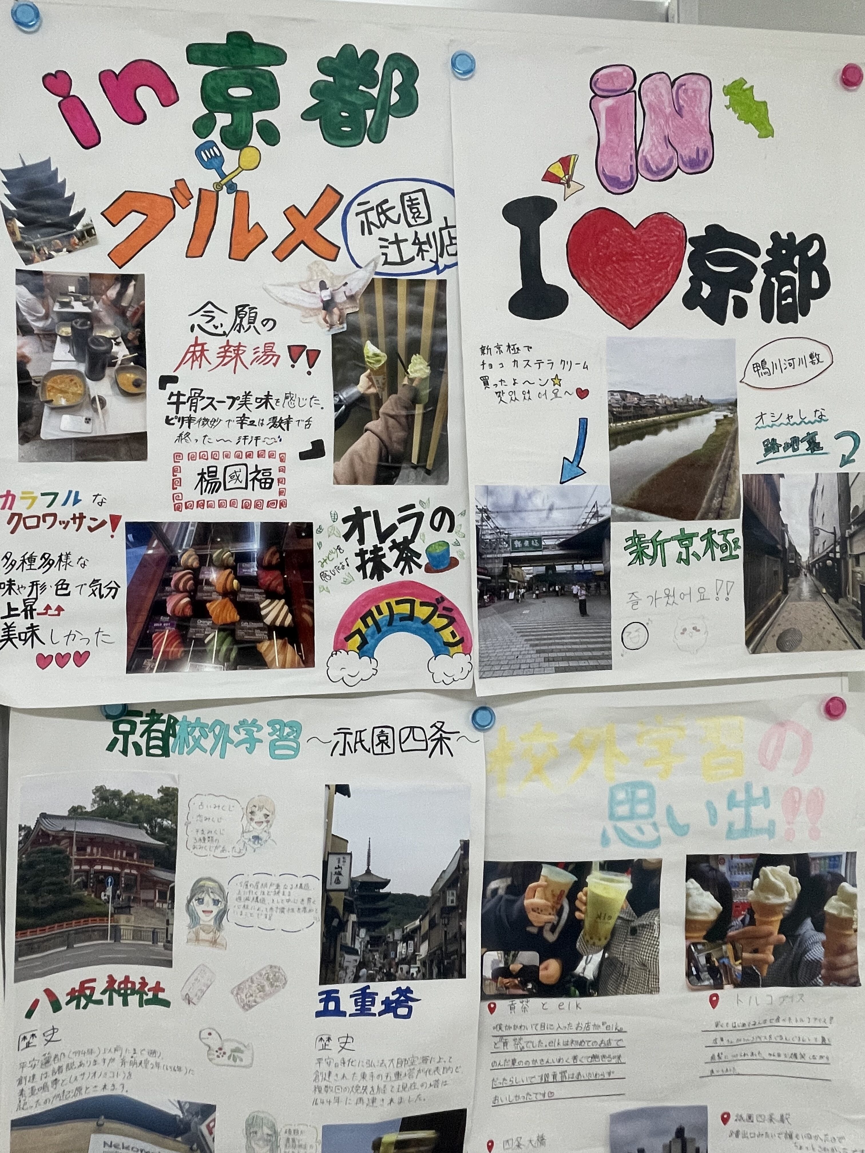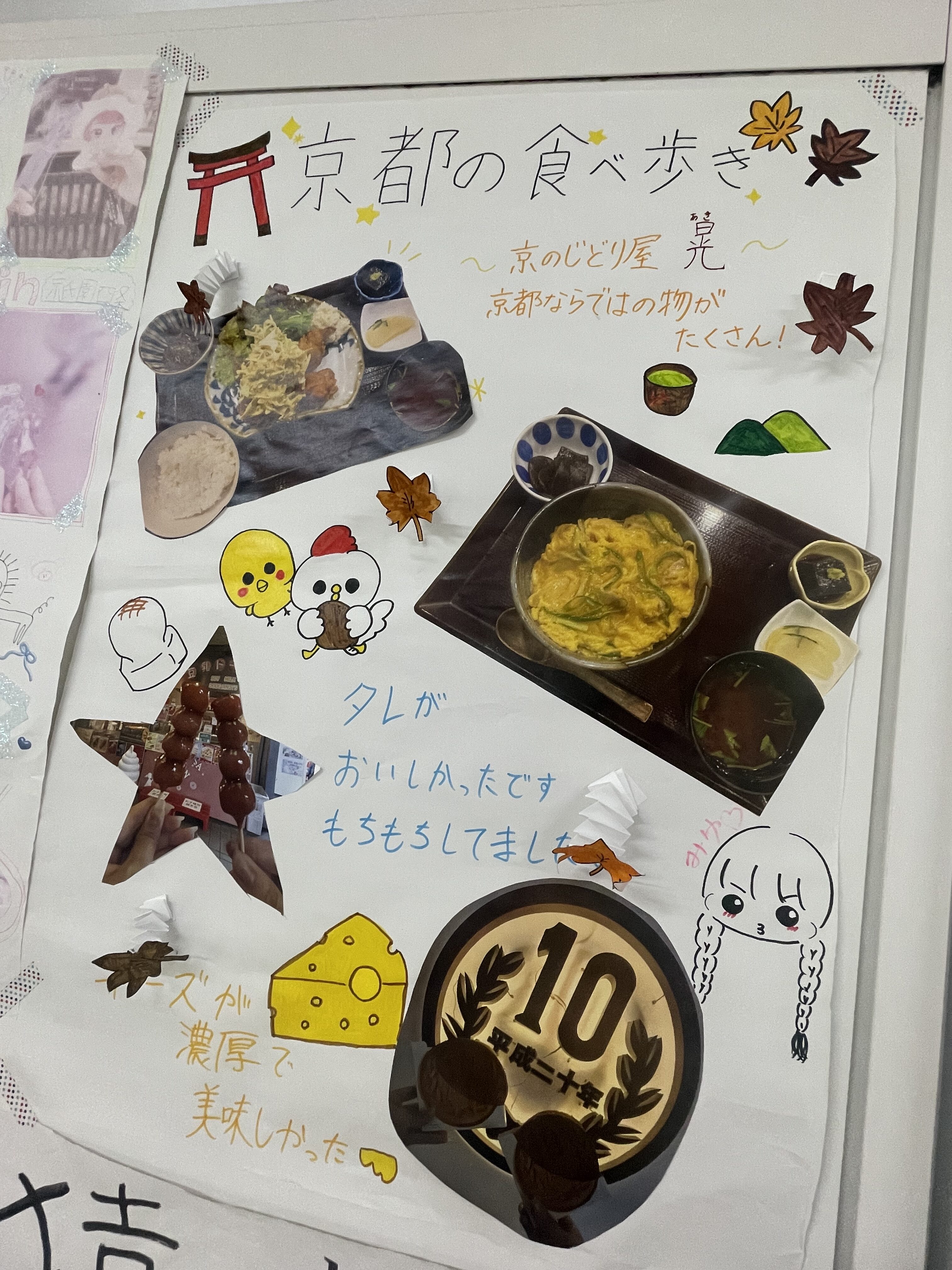 また、教室前の廊下には、秋の遠足で訪れた京都の思い出を写真や感想で紹介していました🍁