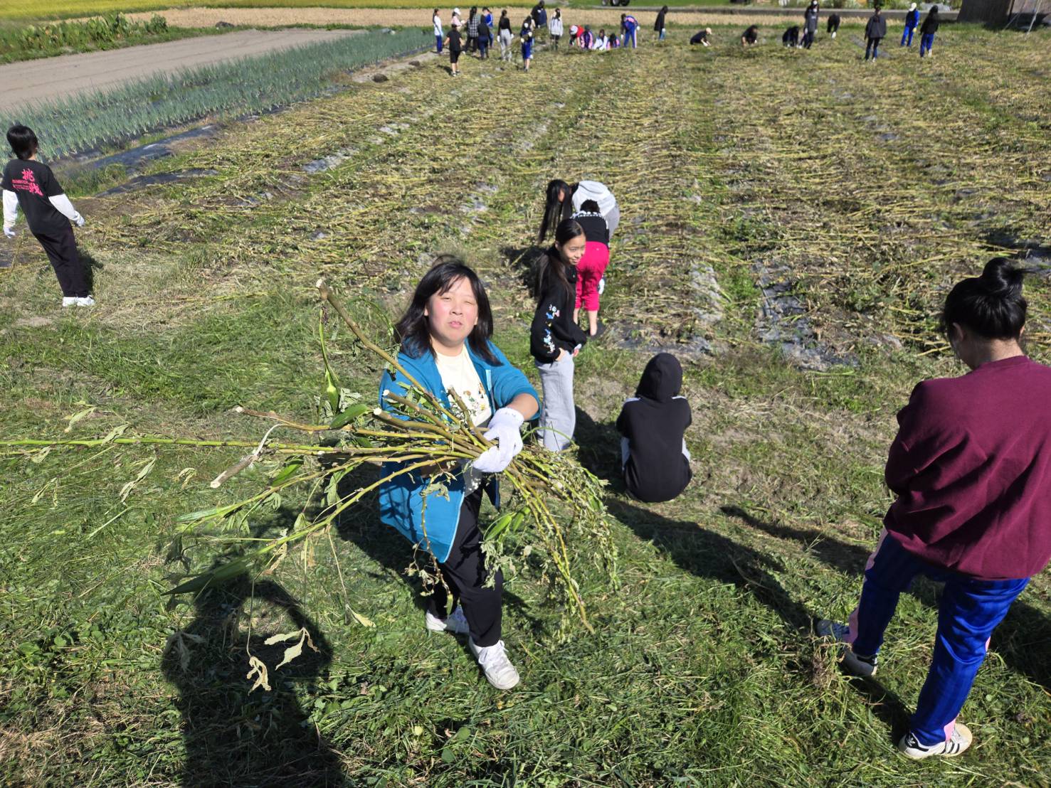 オクラ畑の片付けや、稲刈り前の雑草抜きなどに取り組み、自然の中で汗を流しながら貴重な学びの時間となりました。