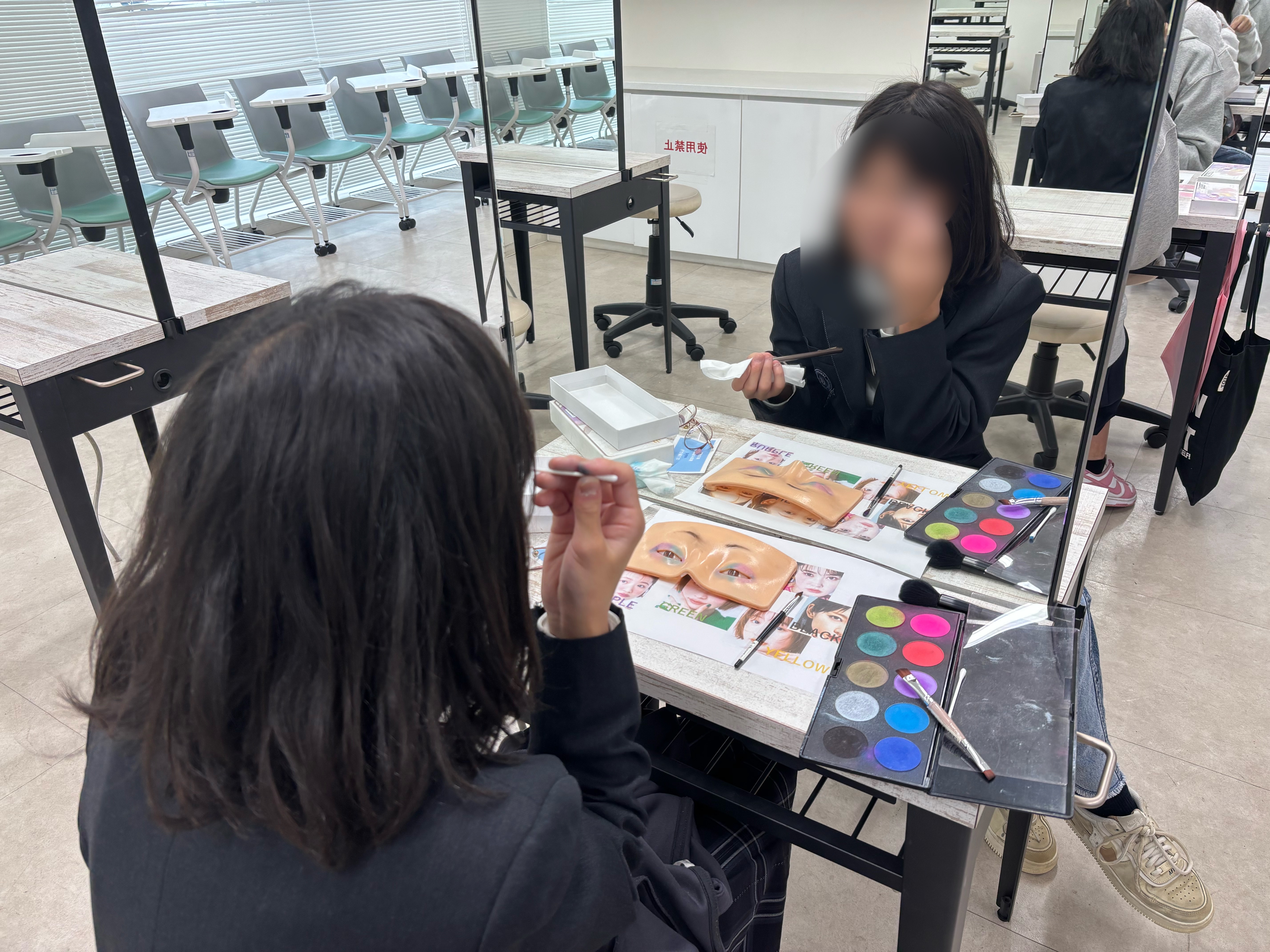 メイク体験は実際に授業で使用しているメイク道具を使いました💄
