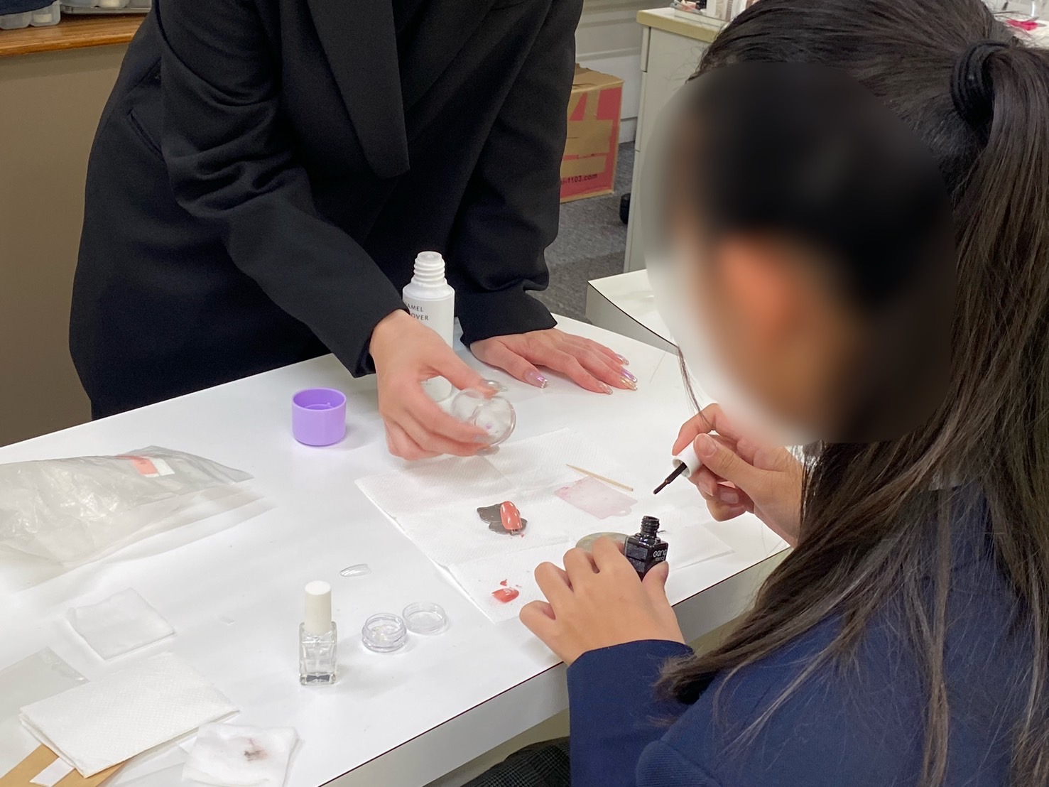 次に、美容、メイク、ネイルの授業にそれぞれ分かれて体験していただきました✨