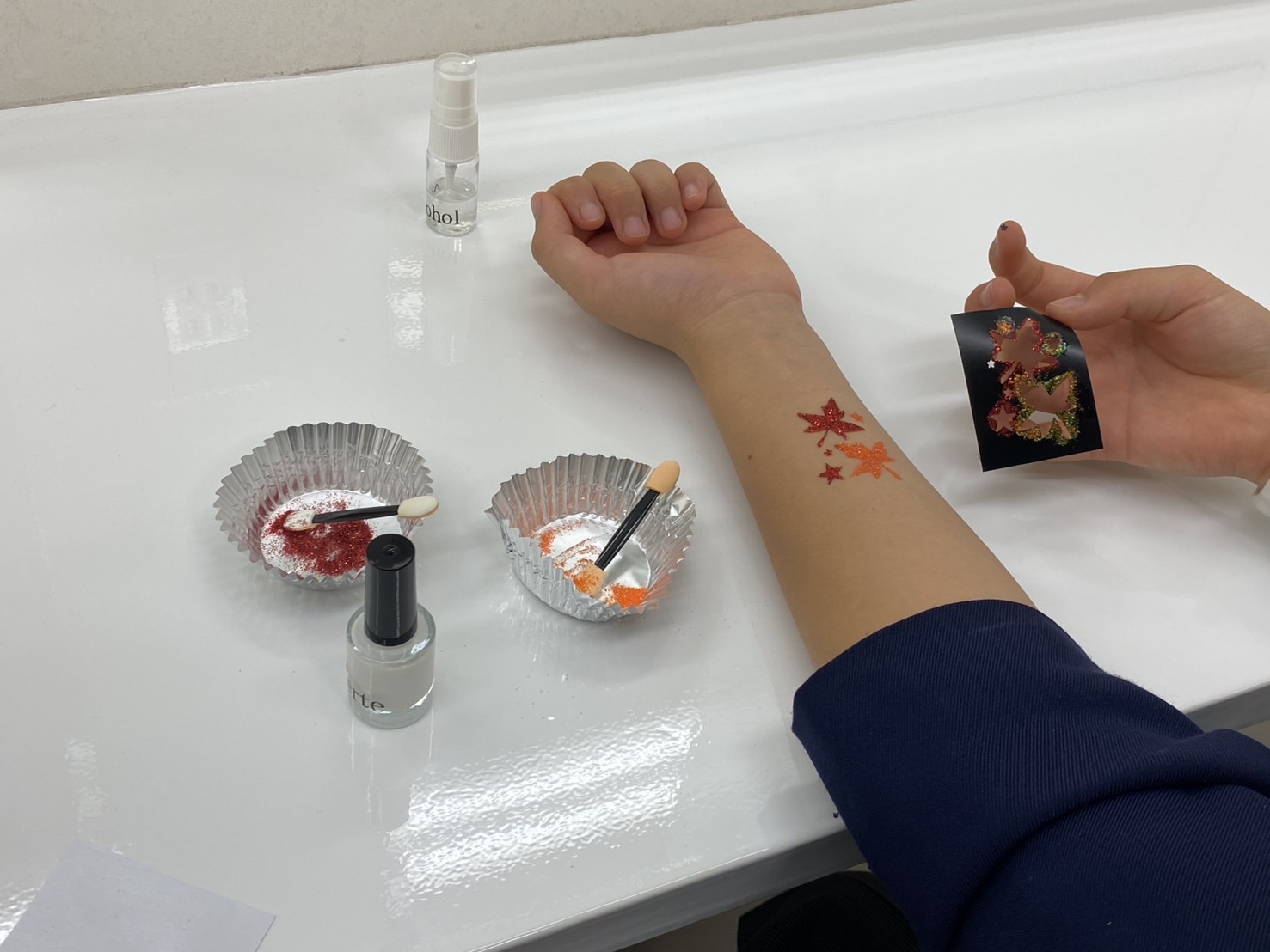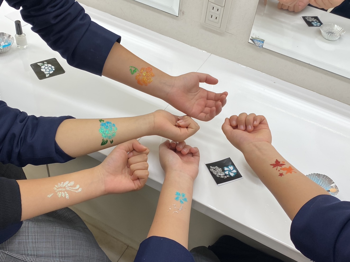 メイクの授業では、好きな模様を選んでボディメイクをしていただきました💕