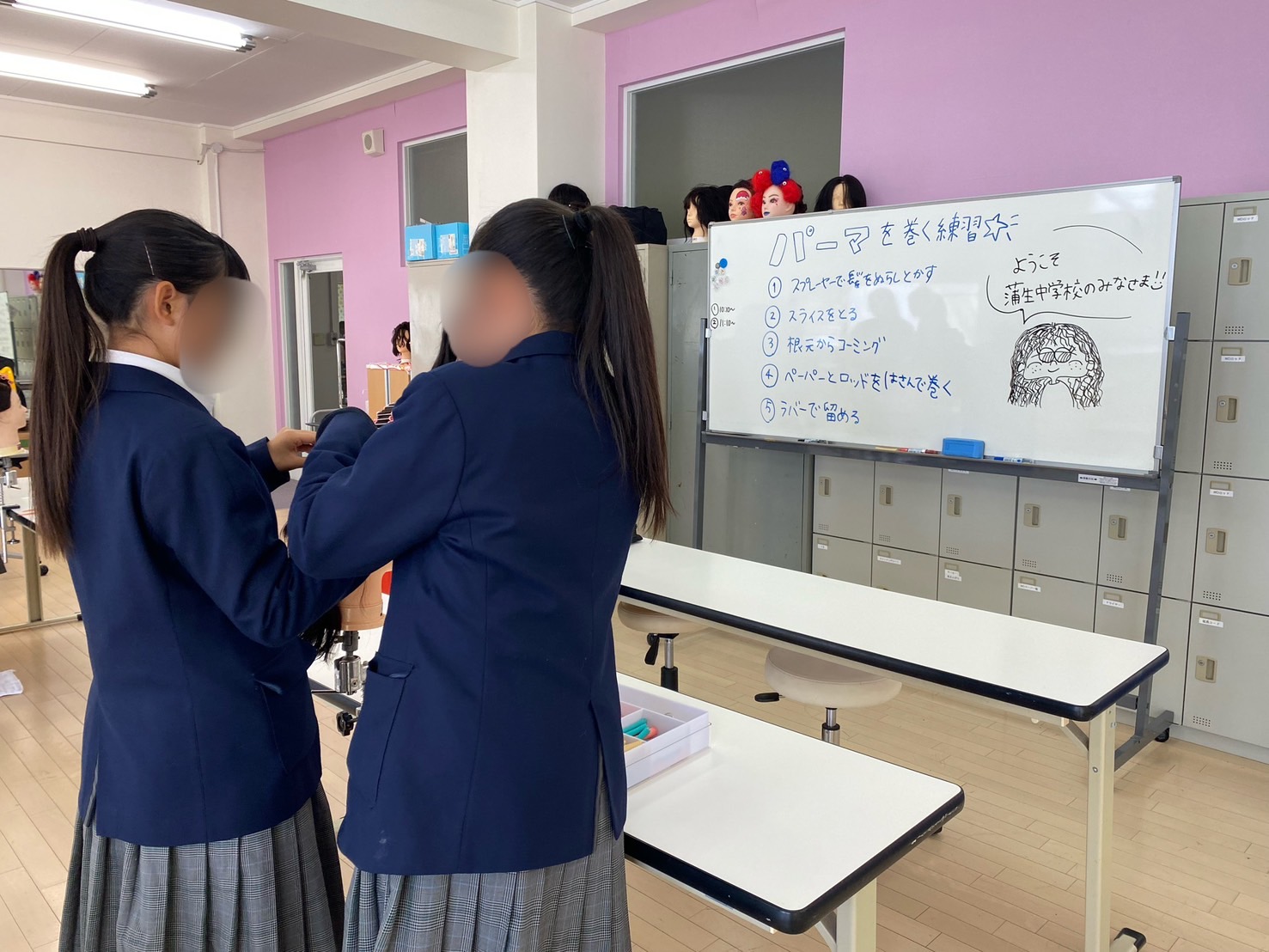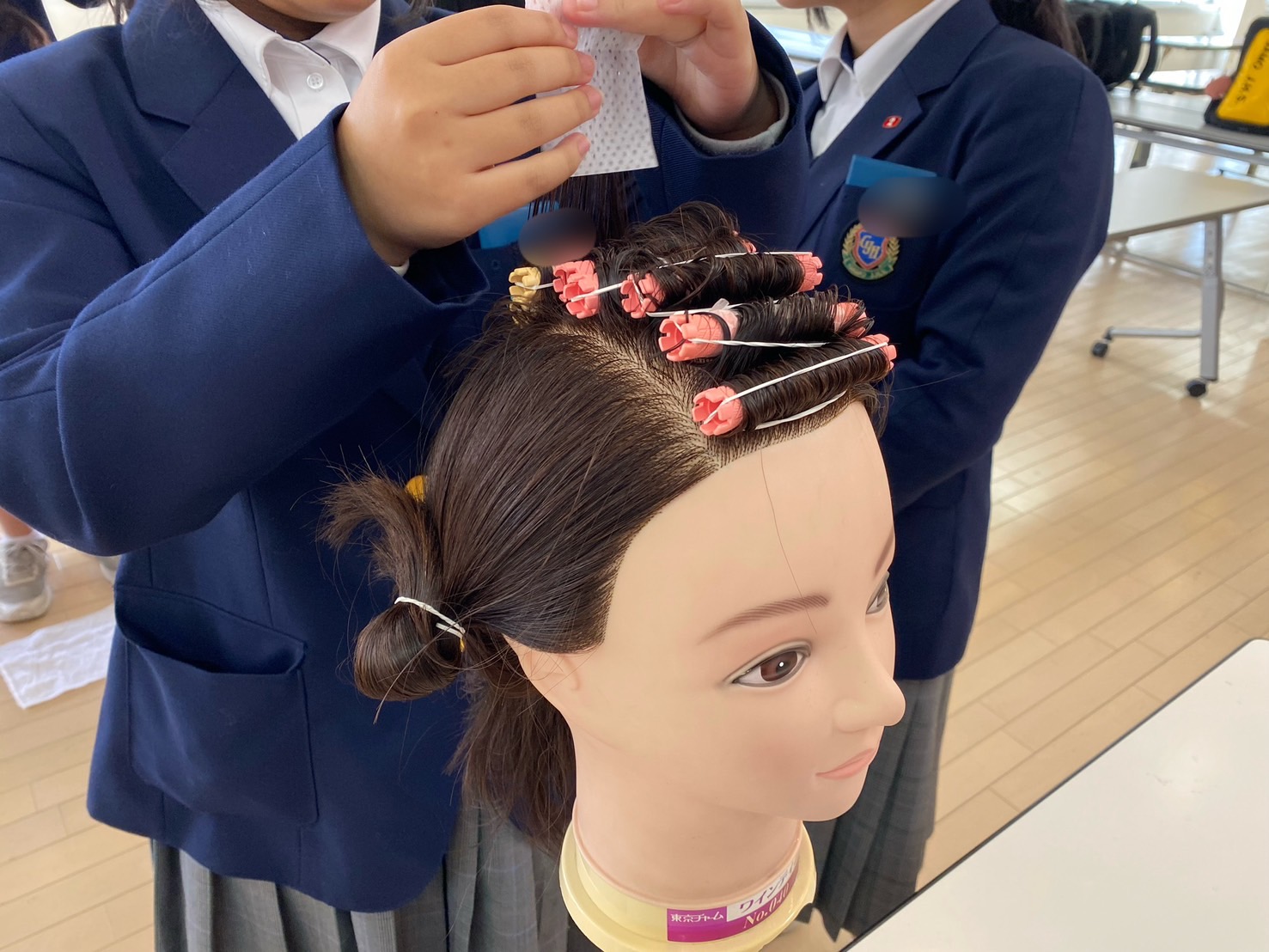 美容の授業ではパーマをあてる技術の基礎を学んでいただきました💇