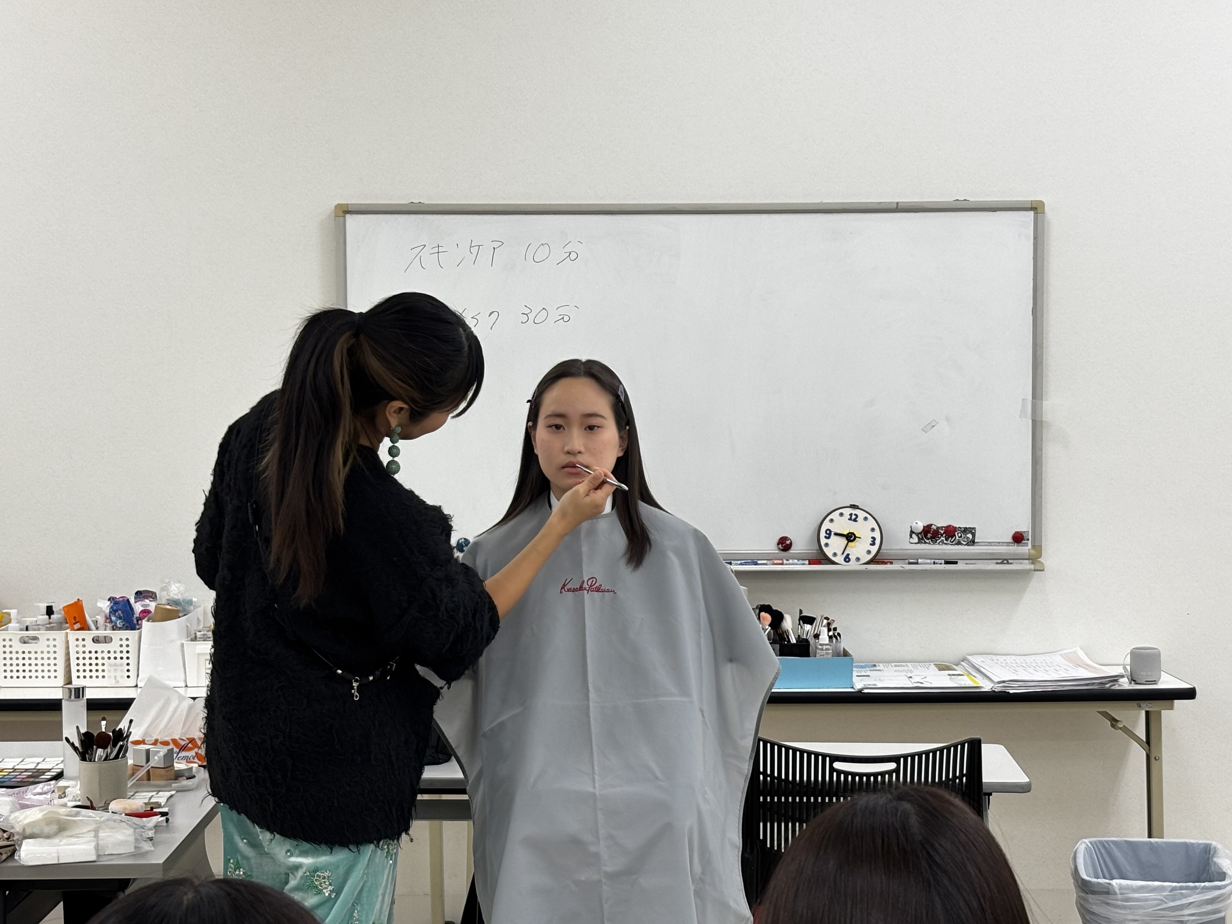 先生からはスキンケアの方法や最近のトレンドなどを交えて教えてくださったので、今後の参考にとメモを取りながら授業を受けている様子が伺えました📒✍