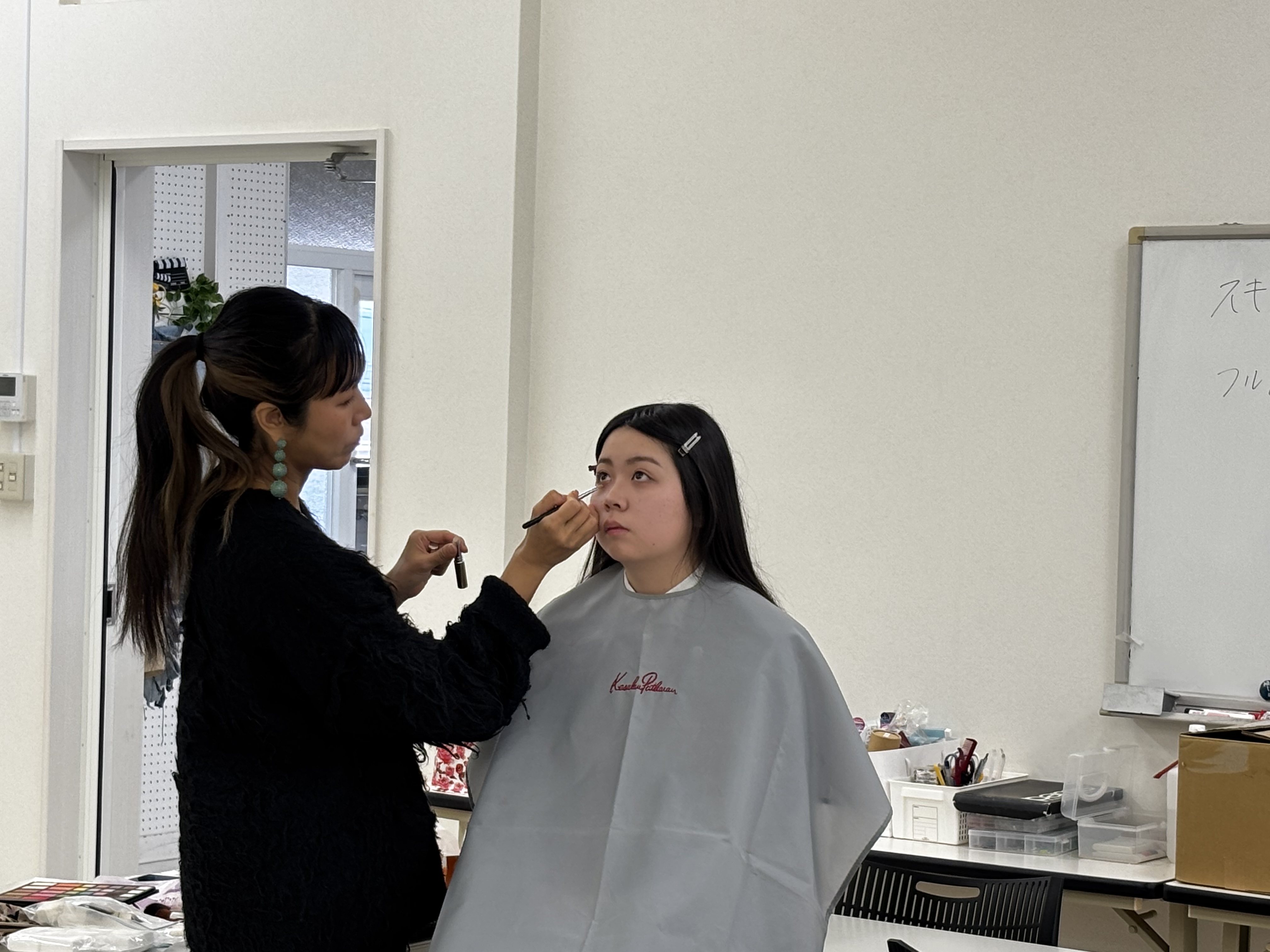 本校が実習で使用しているケサランパサランのメイク教材を使ってデモンストレーションをしていただきました😄