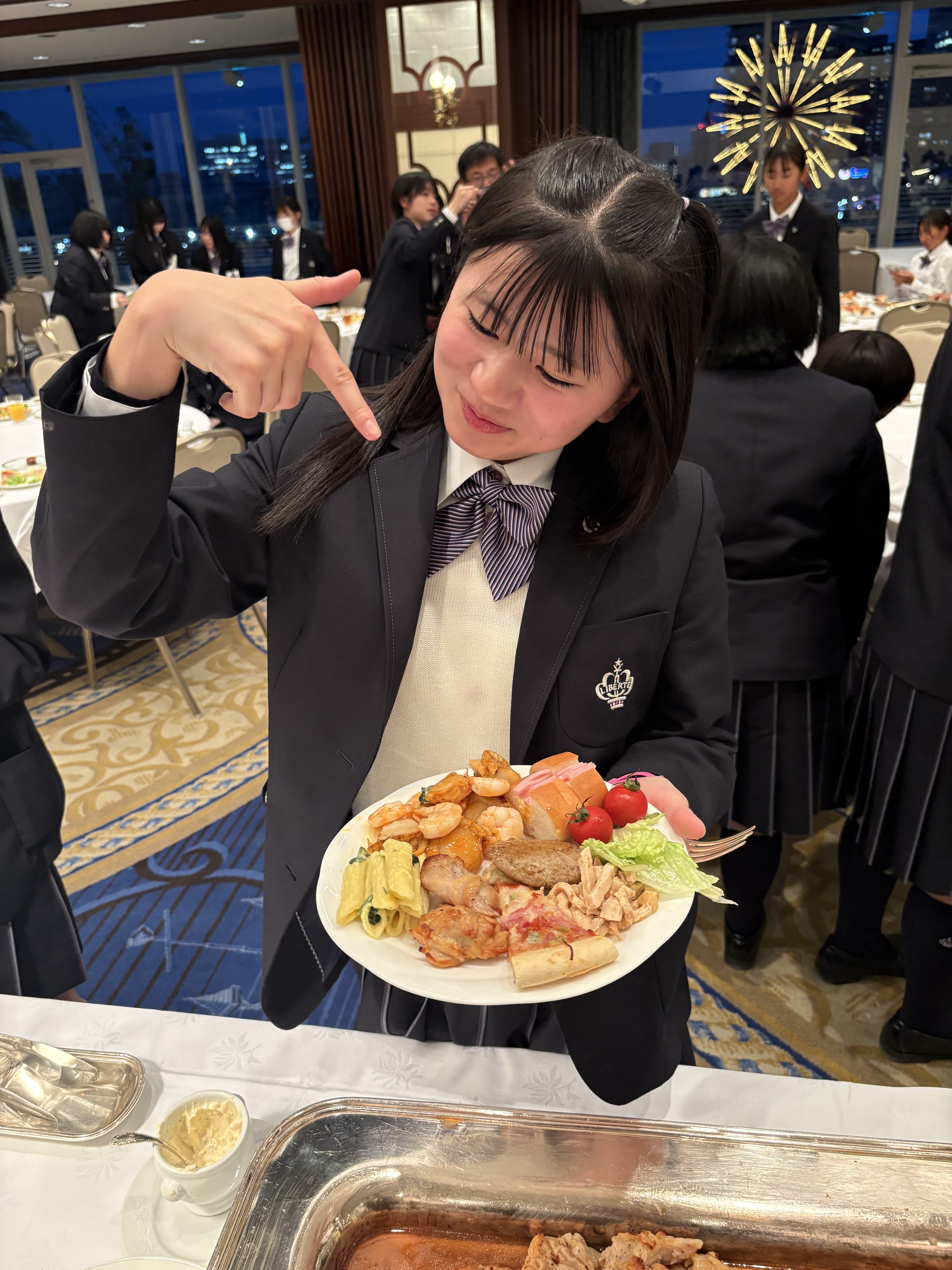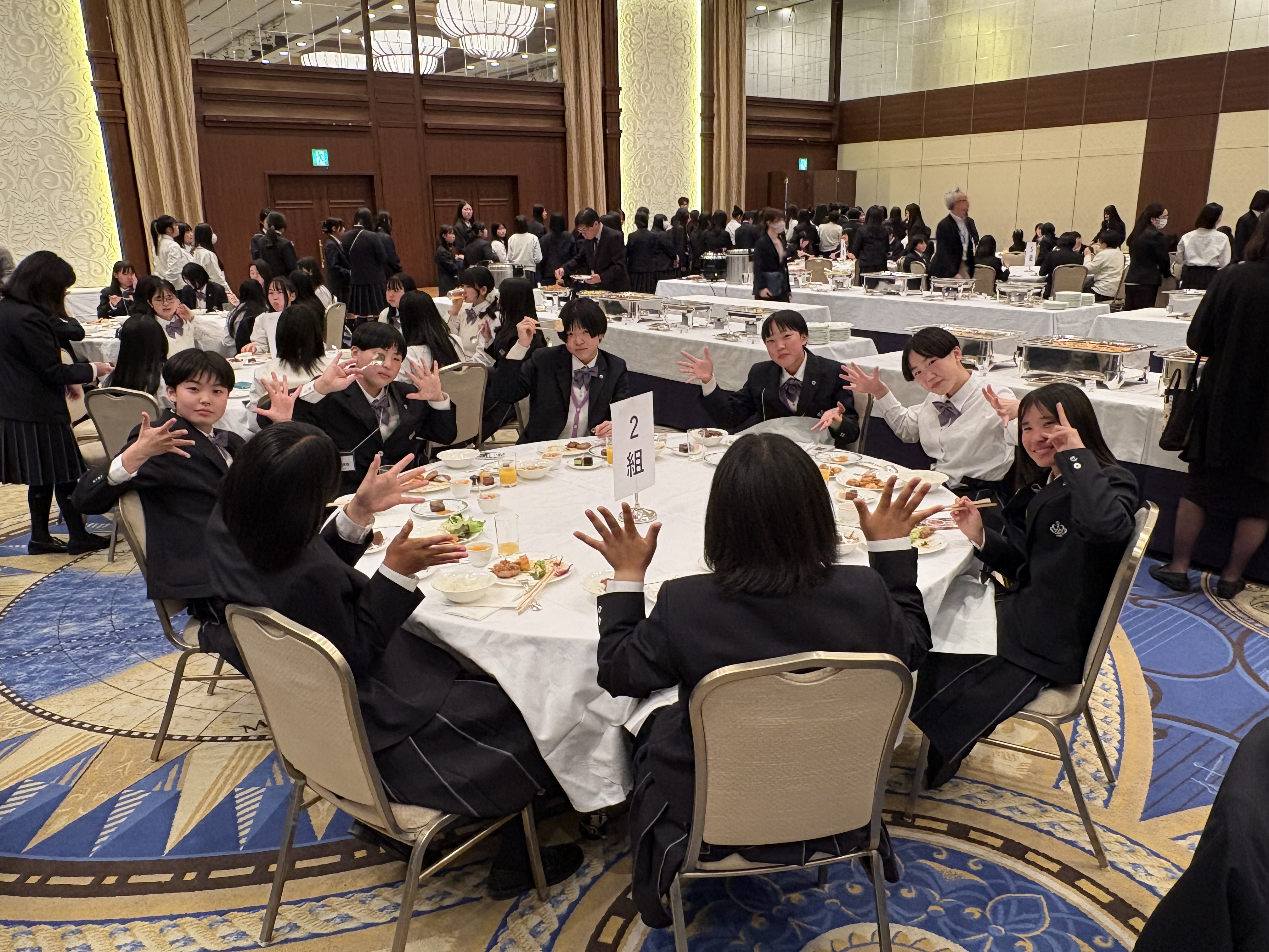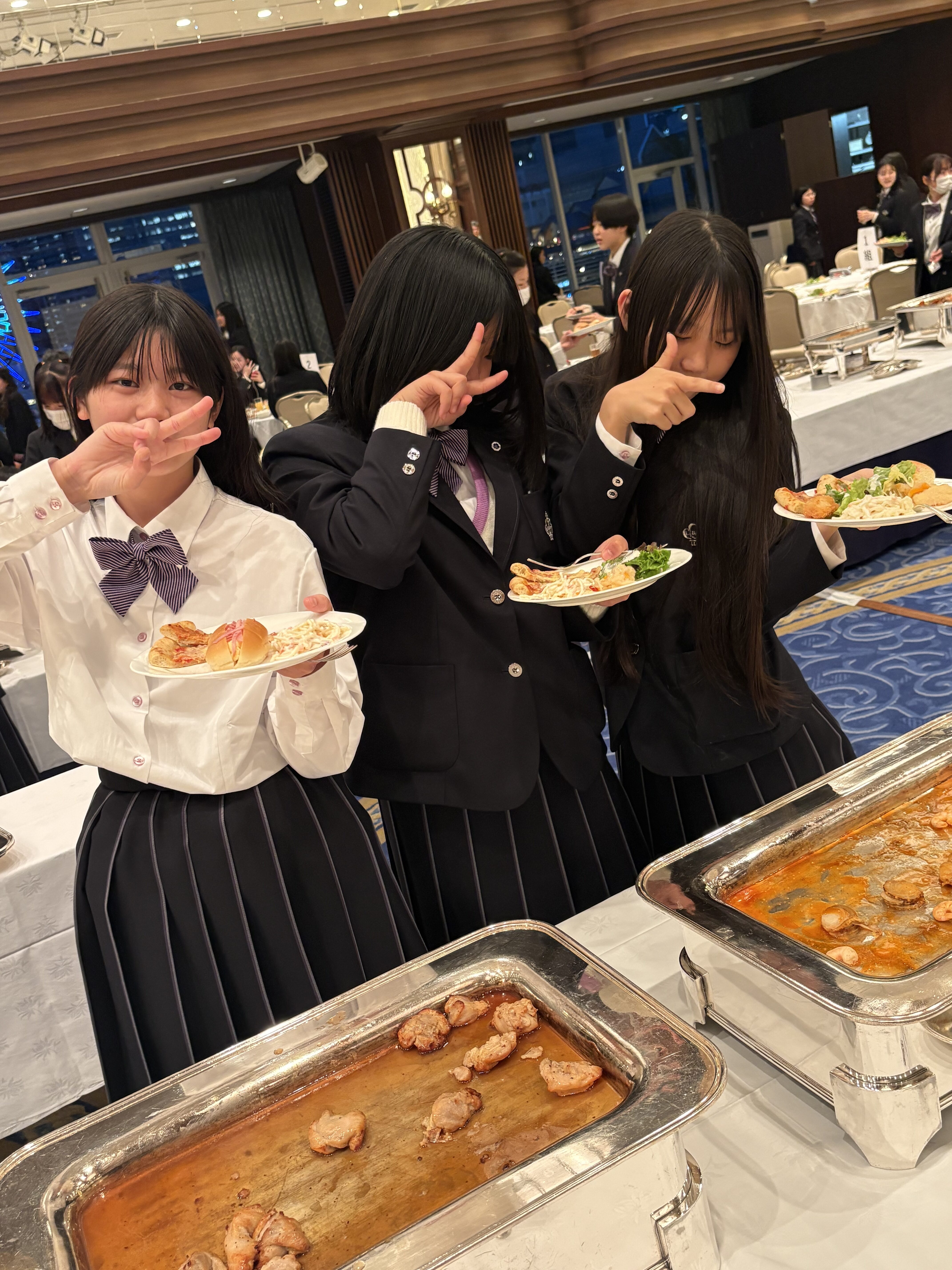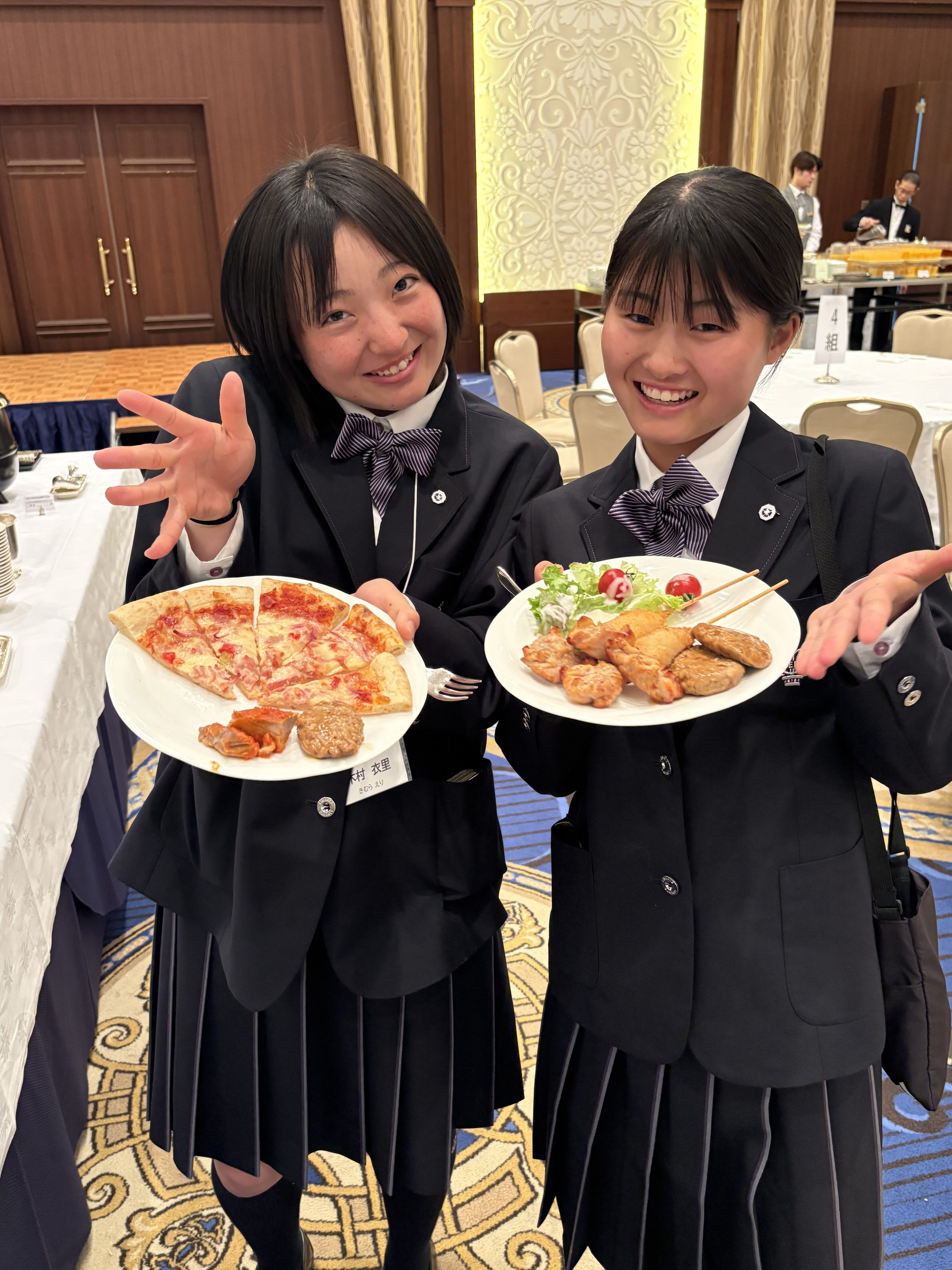夕食では本校の同じビュッフェスタイルの食事をいただきました。彩り豊かな料理が並び、生徒たちは友人と楽しそうに会話をしながら、笑顔で食事を楽しんでいました。新しい環境の中でも、少しずつ打ち解けていく様子がうかがえ、和やかな時間となりました。